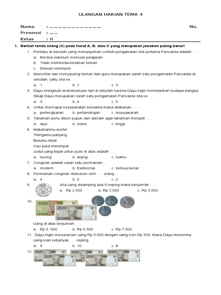 C Soal-soal tematik lain kelas 1 sampai kelas 5 klik di bawah ini. Keping uang seratus rupiah. Unduh Soal Penilaian Harian UH Kelas 2 Tema 3 disertai Kunci Jawaban Soal PH Kelas 2 Tema 3 subtema 1 subtema 3 subtema 3 subtema 4 sudah tergabung dalam satu file doc.