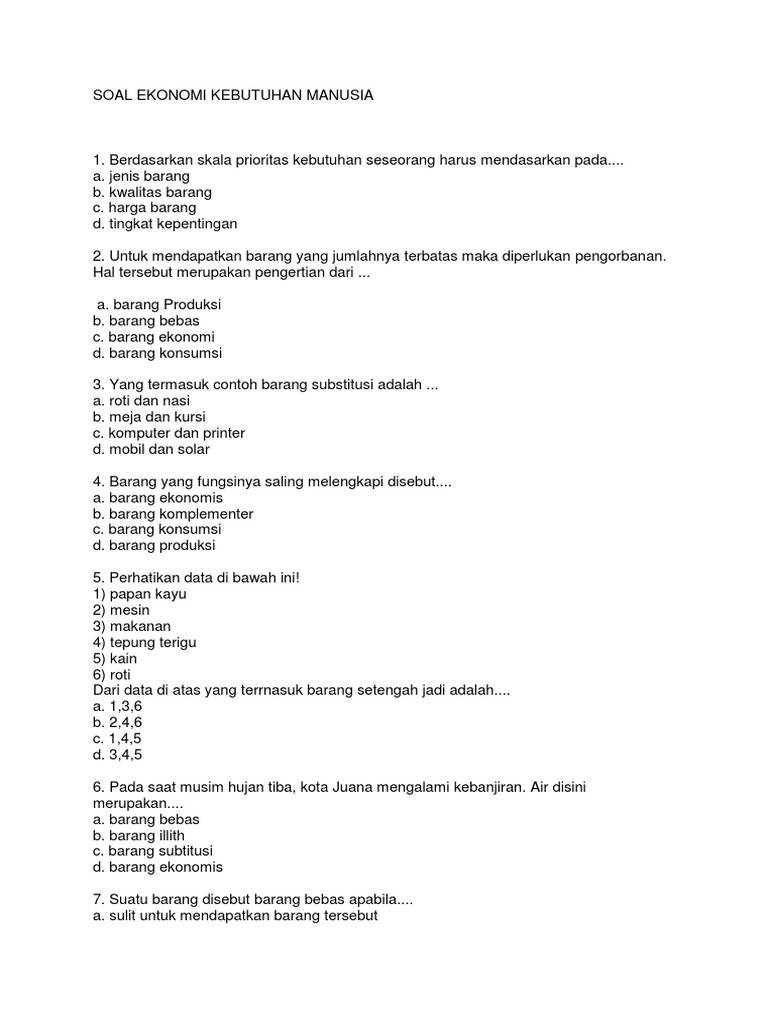 Berikut ada 10 Soal Pilihan ganda tentang kebutuhan dan kelangkaan. Contoh soal prakarya beserta jawabannya 1 minggu 05 januari 2020 prakarya termasuk. Download soal dan jawaban ekonomi teknik.