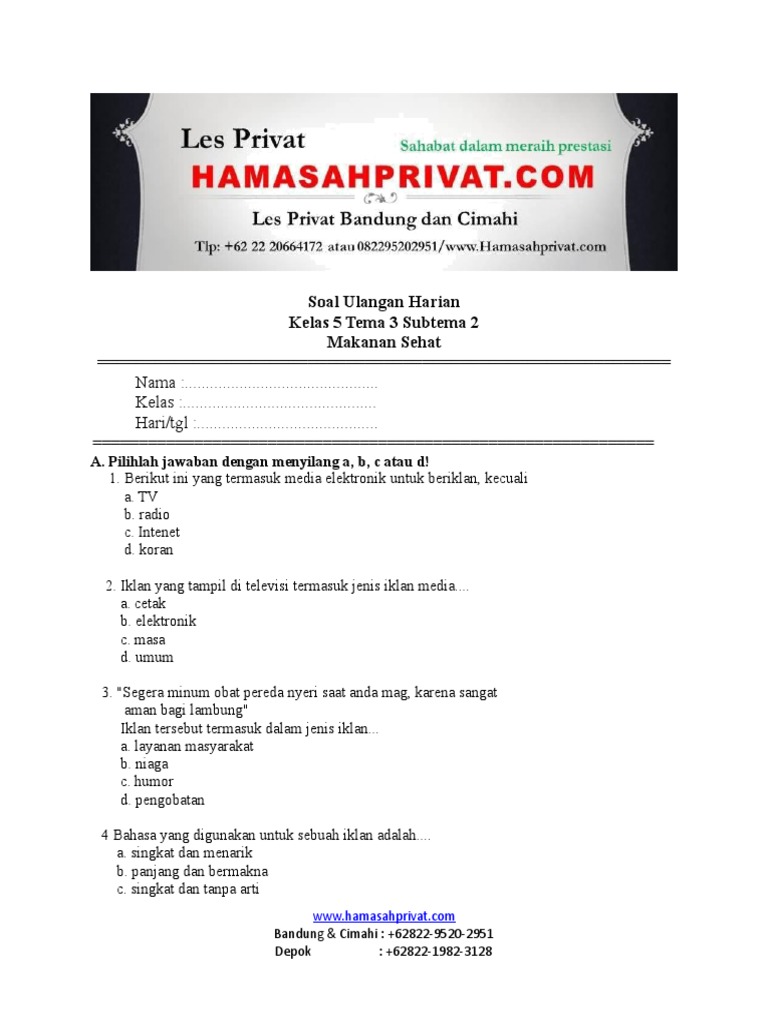 Soal Kelas 5 Tema 3 Subtema 2 Makanan Sehat Doc