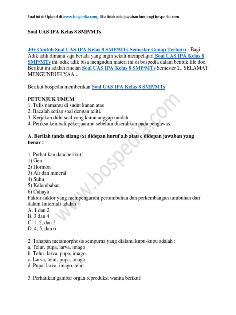 40 Contoh Soal Uas Ipa Kelas 8 Smp Mts Semester Genap