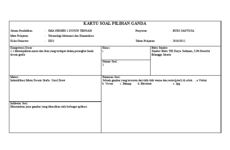 Doc Contoh Kartu Soal Rina Hastin Academia Edu