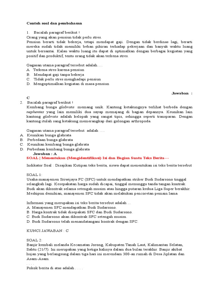 Contoh Soal Dan Pembahasan Bahasa Indonesia