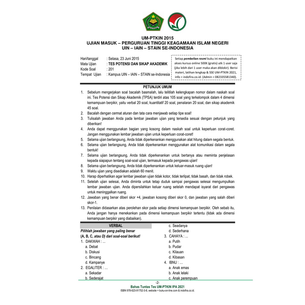 Soal UM-PTKIN TKB IPA 2018 dan Jawaban. Bahasa Indonesia Matematika Bahasa Inggris dan IPA. 3819 likes 30 talking about this.