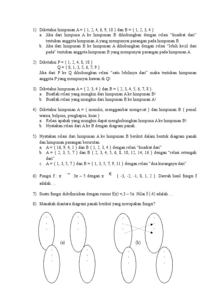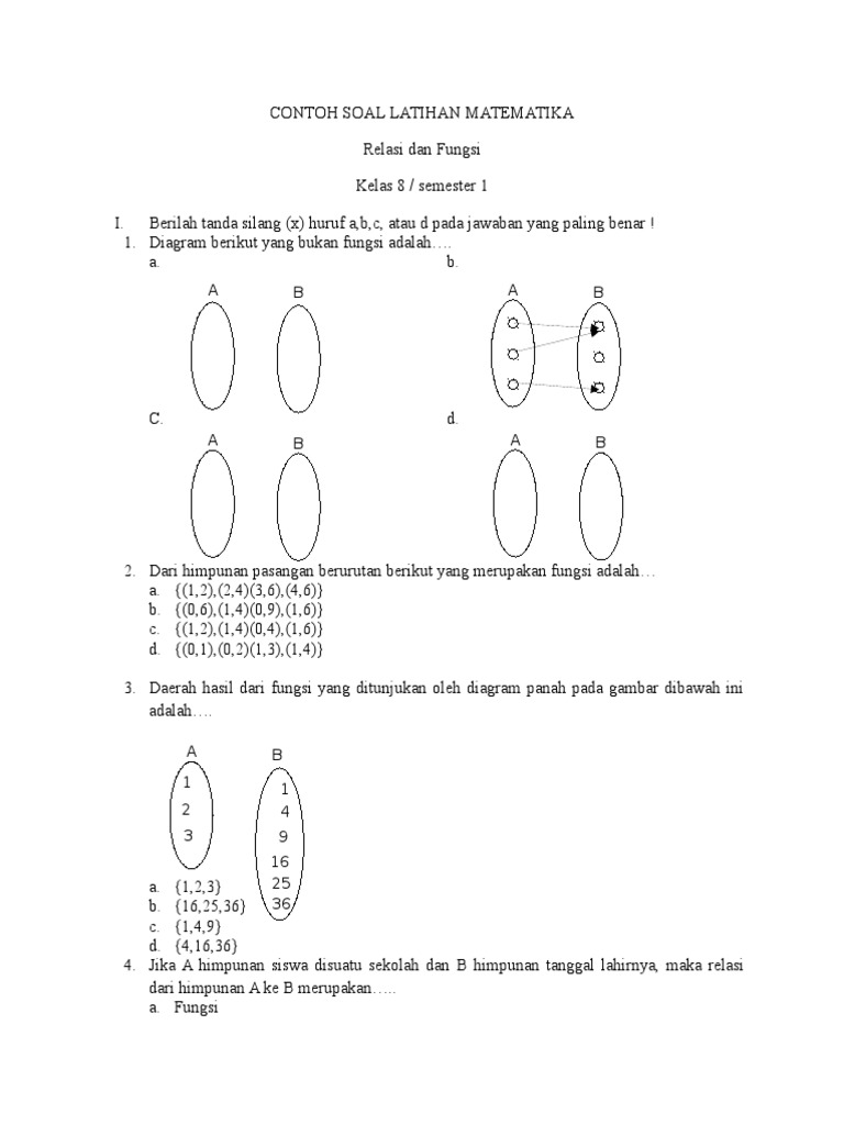 2 Contoh Soal Latihan Matematika Relasi Dan Fungsi Kelas 8 Smpdocx